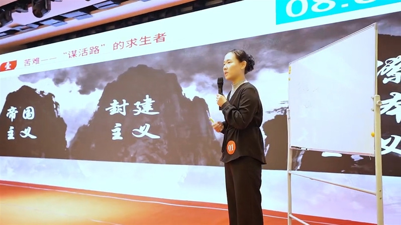 本次赛事竞争激烈,历经多轮选拔。经校内初选、全省线上初赛,2025年6月,马雪贤老师进入济宁分会场现场展示环节,以《百年京张——技术突围的制度密码》为主题展开教学展示,凭借对历史脉络的清晰梳理、对制度逻辑的深度解读,成功拿到晋级“萌新磨课总会”的入场券。